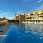 Una pequeña cocina tiene un horno de microondas, un hervidor eléctrico y una nevera. Este apartamento también ofrece una piscina exterior para elevar la experiencia general de la estancia de los huéspedes. En la zona se organizan diversas actividades, como actividades náuticas, windsurf y equitación.